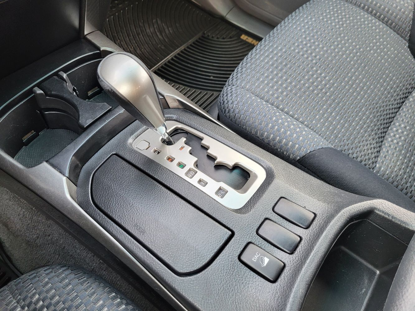 Floor console storage: Covered floor console storage