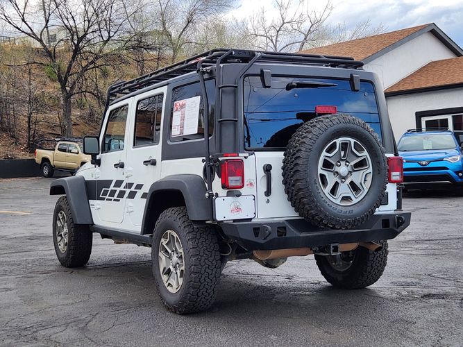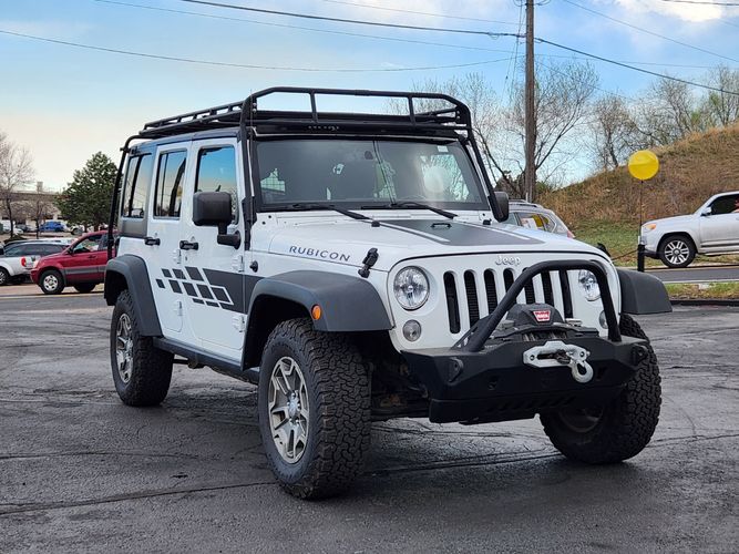 Experience the thrill of adventure with the 2014 Jeep Wrangler Unlimited Rubicon, a true icon in off-road capability and rugged style. This pristine vehicle comes in an eye-catching Bright White Clearcoat that not only commands attention on city streets but also blends seamlessly into natural landscapes. With its legendary 4WD drivetrain, this Wrangler is engineered to conquer any terrain you dare to explore.