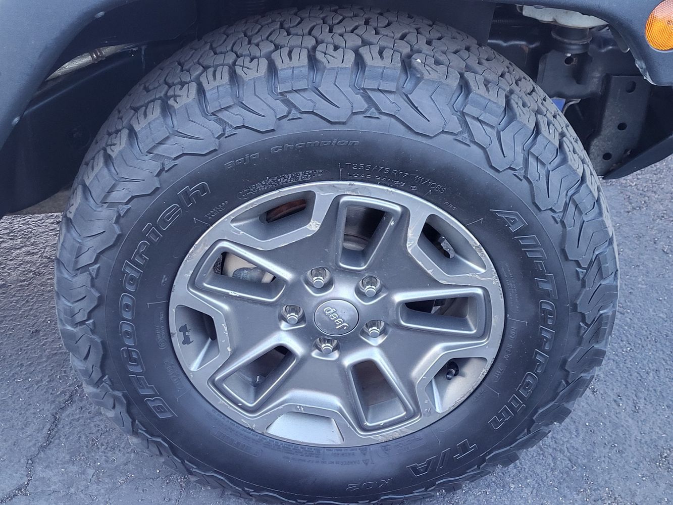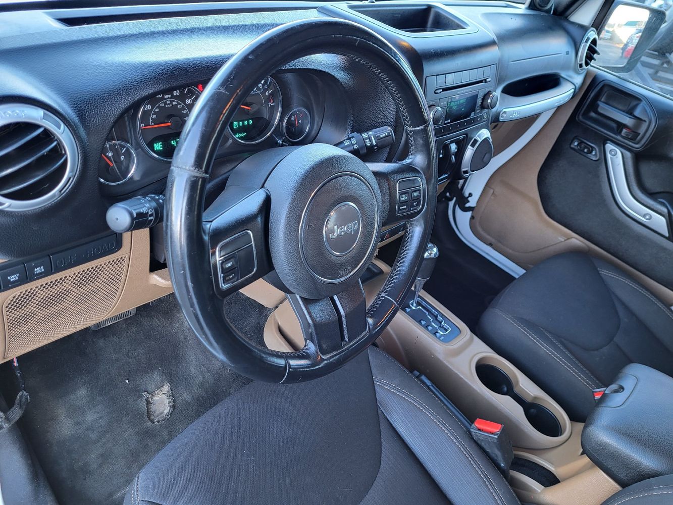 Inside, you'll find a spacious cabin designed for comfort without sacrificing functionality. The durable materials are ready to withstand whatever your adventures throw at them while offering ample room for passengers and gear alike. Whether you're heading out on a weekend camping trip or navigating through urban jungles, this Wrangler provides versatility that suits every lifestyle.