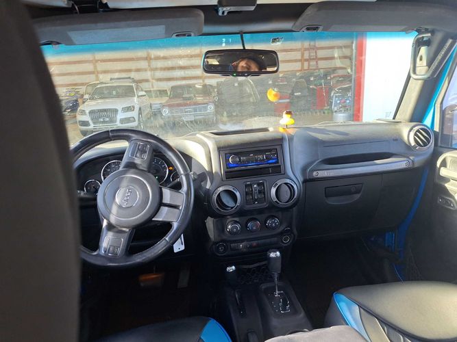 Unleash your adventurous spirit with the 2015 Jeep Wrangler Unlimited Sport, a rugged icon that stands ready to conquer both urban streets and off-road trails. With its legendary 4WD drivetrain, this vehicle is engineered for those who crave exploration beyond the ordinary. Whether you're navigating cityscapes or tackling challenging terrains, the Wrangler's robust capabilities ensure you can go wherever your heart desires.