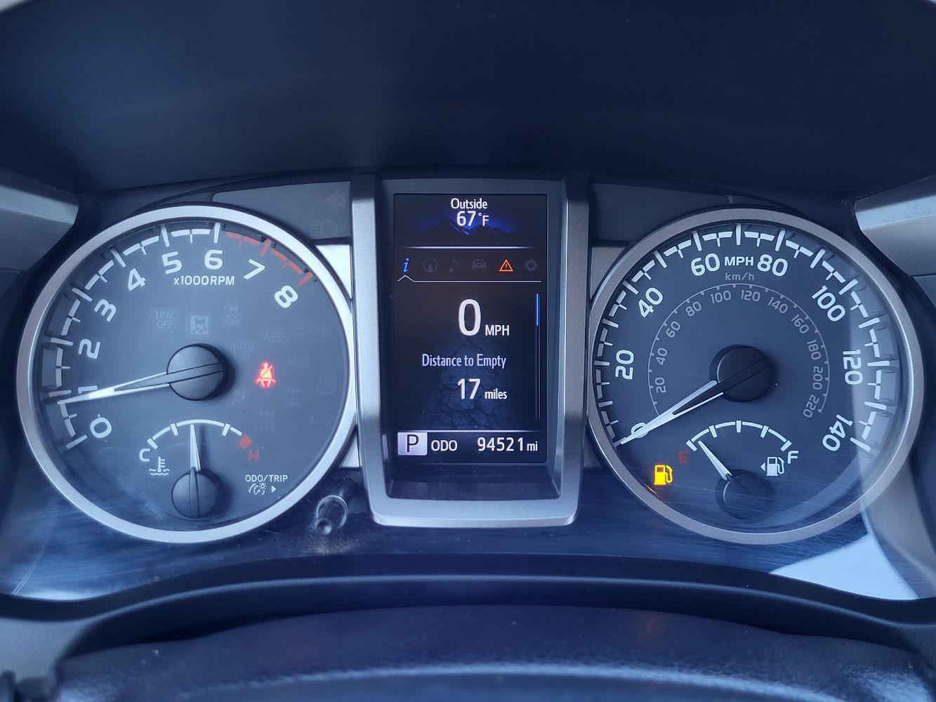 Low level warnings: Low level warning for fuel and brake fluid