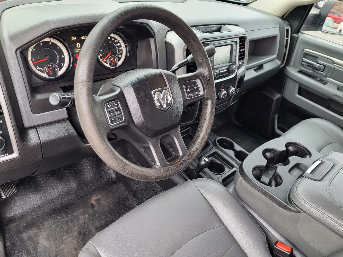 Inside, you'll find a no-nonsense interior crafted for durability and functionality. The cabin offers straightforward controls within easy reach so you can focus on what matters most—getting the job done efficiently. With its regular cab configuration, there's plenty of room for two passengers alongside practical storage solutions to keep your essentials organized during long hauls.