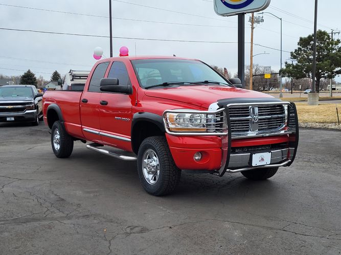 Experience the power and durability of a true workhorse with this 2006 Dodge Ram 2500 Laramie. Dressed in an eye-catching Flame Red Clearcoat, this truck is designed to turn heads while delivering unmatched performance. Under the hood lies the legendary Cummins 6-cylinder diesel engine, producing an impressive 325 horsepower and a staggering 610 lb-ft of torque. This powerhouse ensures that whether you're towing heavy loads or tackling rugged terrain, you have all the muscle you need.